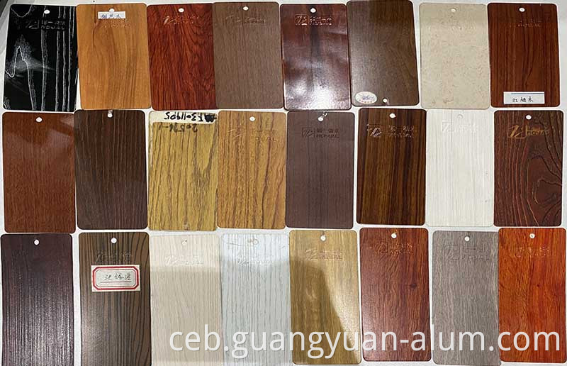 Alang sa profile sa kahoy nga aluminyo sa kahoy, kasagaran una namon nga spray spray coat ang primer coating sa expruded nga mga profile sa aluminyo, ug dayon i-paste ang papel nga lugas sa kahoy. Pinaagi sa vacuum, pagpainit ug uban pang mga proseso, hingpit nga gisulud ang lugas nga kahoy sa Spray Primer, unya makuha ang mga lugas nga kahoy sa nawong sa aluminyo.