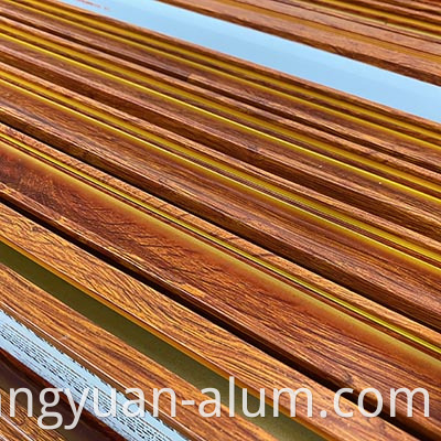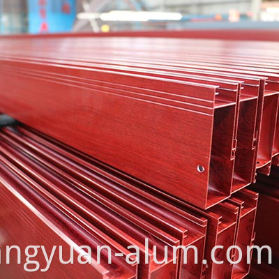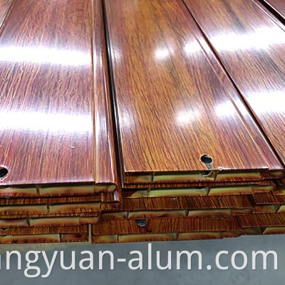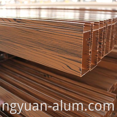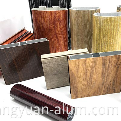 4. Pagkahuman sa nawong sa mga profile sa aluminyo gitambalan uban ang simulate nga sumbanan sa kahoy nga kahoy, ang pangdekorasyon nga epekto sa solidong kahoy mahimong makab-ot o molabaw pa.